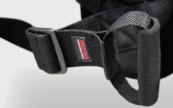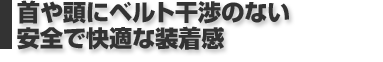 バックプレートを用いず、ベルトのみの構成で運転者の肩と同乗者の肩を保持しようとしたタンデムベルトの場合、装着したベルトが首や頭に干渉してしまう可能性があります。これは不快な装着感といった問題だけでなく、大変危険な状態に陥る場合があります。