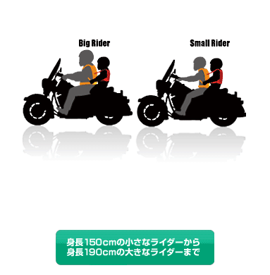 但し「乗員の身長差」から「オートバイのシート段差」を引いた高さが、0cm〜75cmの範囲である事が条件となります。