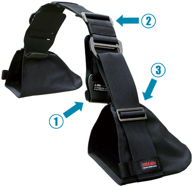 乗員の足の長さに合わせて調節する「ステップ本体のベルト」です。